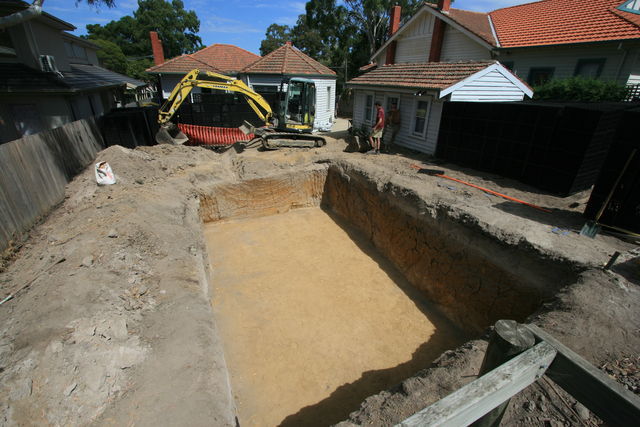 A layer of topsoil is remoed and stored on site to lay over the completed tank. Then the excavation of the tank can begin.